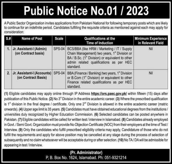 Public Sector Organization Jobs in Islamabad Advertisement 2023